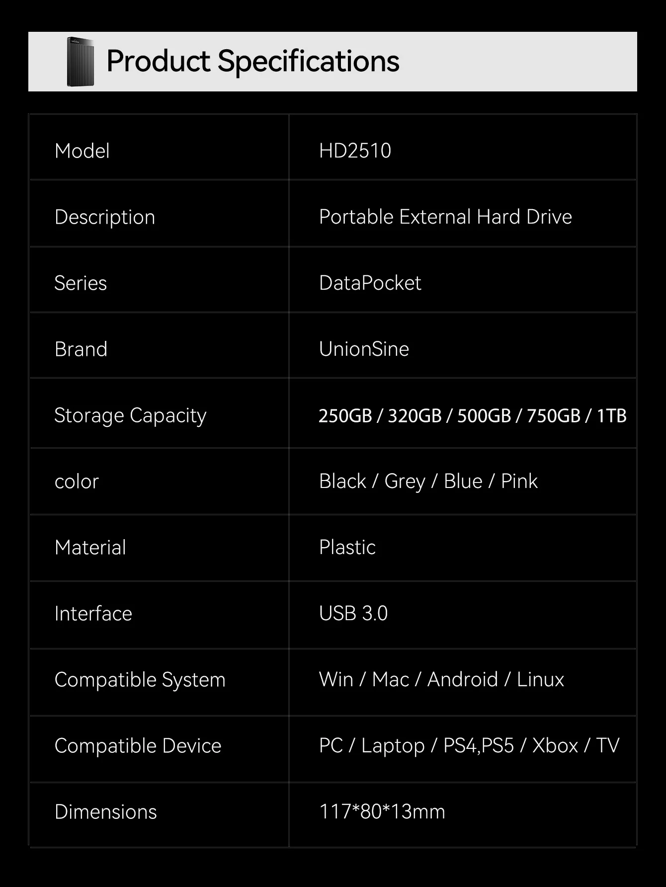 Since its launch, the UnionSine HD2510 external hard drive has sold over 100,000 units across multiple platforms, earning widespread praise from users worldwide.