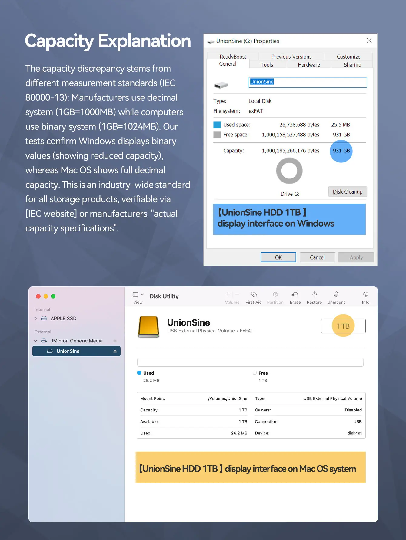 UnionSine 1TB Portable Hard Drive Display Differences Across Systems