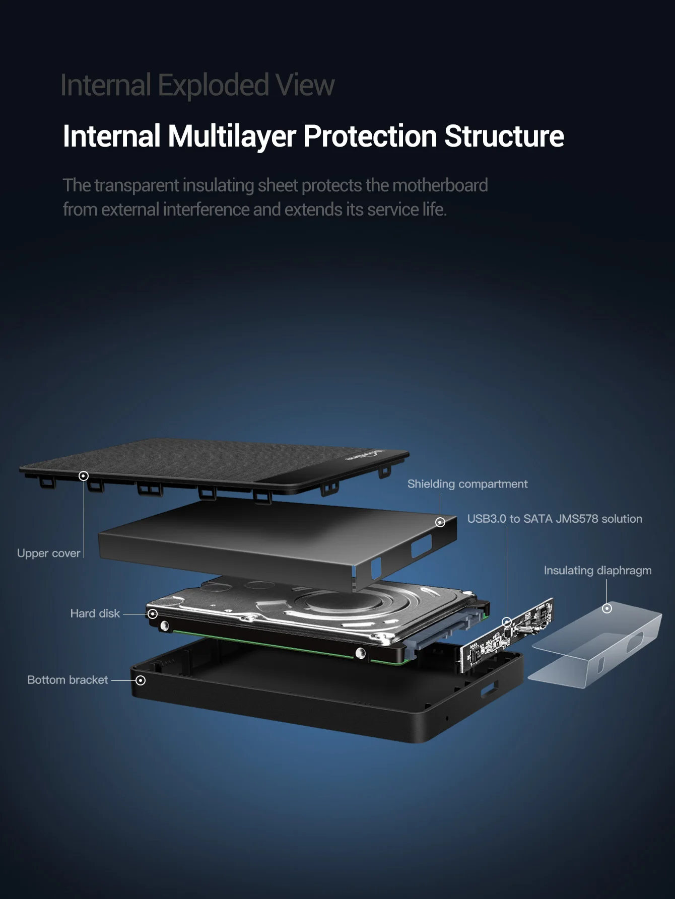 The hard drive is wrapped in an aluminum foil layer to reduce external interference and improve heat dissipation.